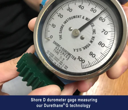 As previously discussed, polyurethanes can be engineered to offer an extensive hardness range from soft, flexible foams to hard, rigid solids and everything else in between. Despite having a similar look and feel to some metals, plastics, and rubbers, polyurethanes can offer designers almost endless physical properties for better performance – even in the most extreme environments. Take our Durethane® G as an example – this material was engineered to approach the hardness of some metals to improve the performance in applications, that required a flawless, squeak-free system. To learn more about this unique material, click here.